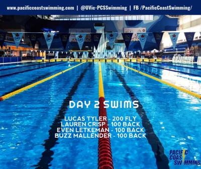 UVic-PCS continued their roll on day two of the Canadian Olympic Swimming Trials with some great swims from some of the team’s youngest members. “The first timers (at Canadian Olympic Trials) learned a lot and are looking forward to gaining more experience as the week progresses,” said Pacific Coast Swimming Director of Athlete Development Rod Barratt. “It has been a very exciting beginning to the meet with so many Canadian records falling over the first two days. The energy in the building is amazing, and the Pan Am Games Aquatic Centre is a world class facility.”