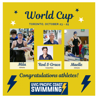 Congratulations to our athletes Maelle Sanborn and Mila Chernenkoff who have been selected to compete in the World Aquatic Swimming World Cup stop in Toronto, October 23th - 25th. Mila will be racing in the 400m freestyle, while Maelle will be racing in the 50m,100m & 200m breaststroke. Stay updated on their performance and experience next week!