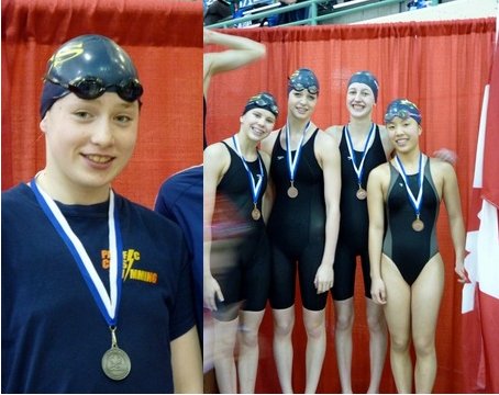 Stefanie Schmidt, Sophia Borchers, Emily Ding and Salin Bol, bronze medal (New Club Record), Girls 14&U 200m MR; and,