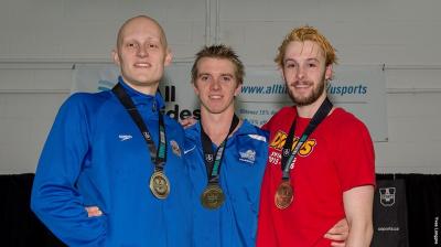 400m freestyle: Eric Hedlin - 1st (3:45.07)**, Jon McKay - 4th (3:51.18)