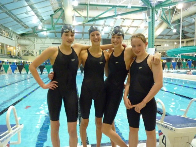 Congratulations to Rosie Moulton, Stefanie Schmidt, Salin Bol, and Caileigh Filmer for setting a new provincial record in the 13-14 Girls 4x200 F.R. with a time of 8:37.08.